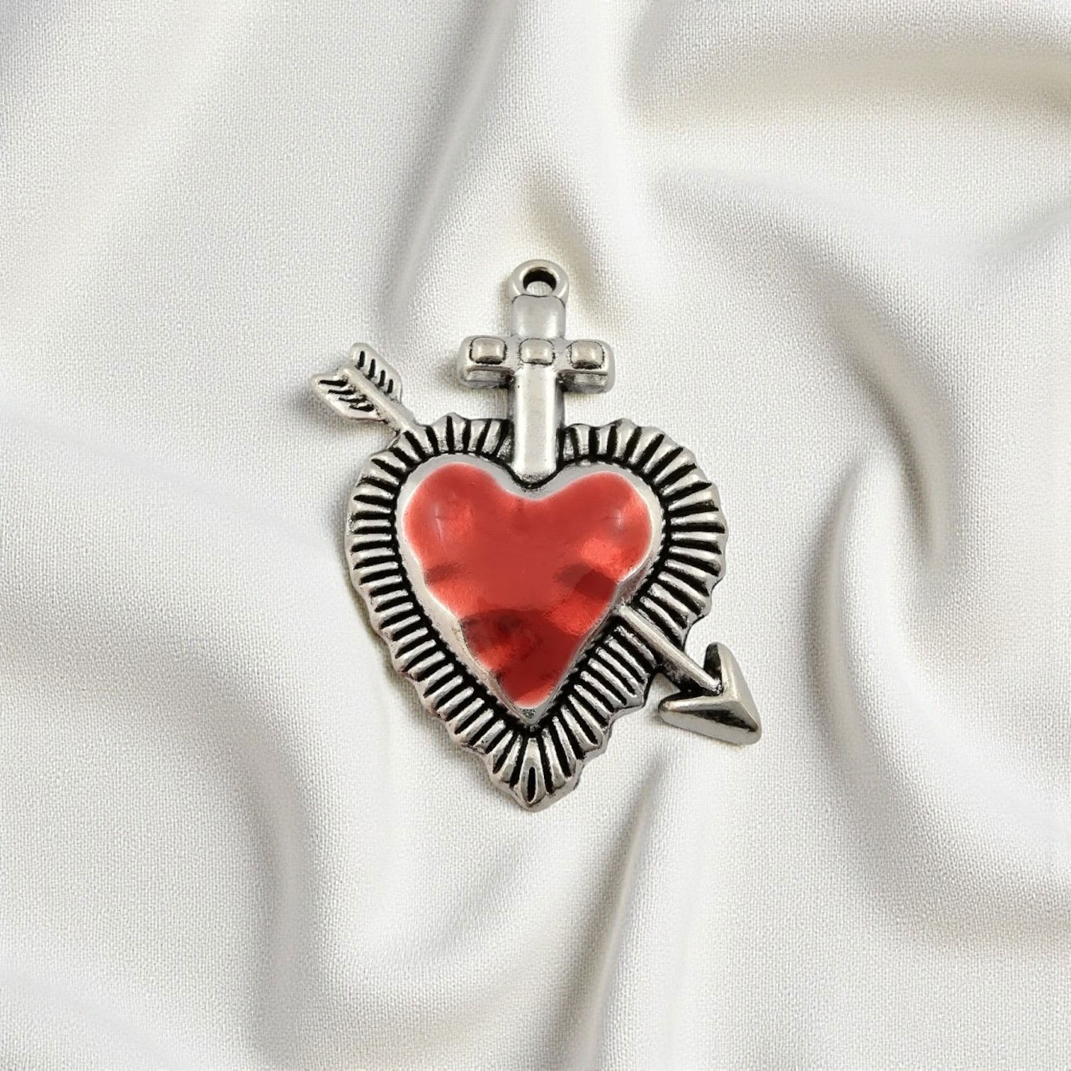 Dije Corazón Rojo Cruz Flecha 35 mm x 37 mm Acero Quirúrgico - 400335