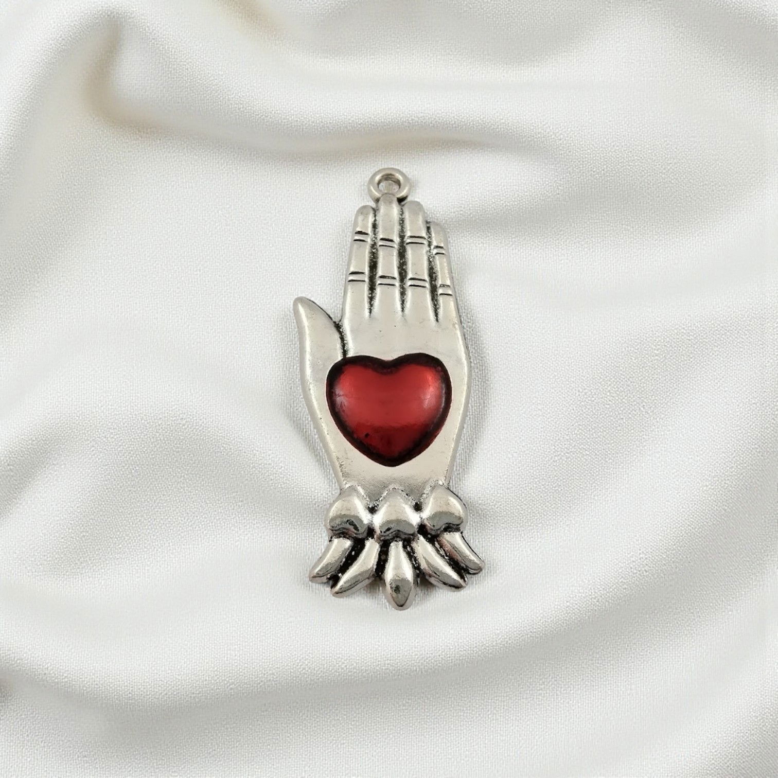 Dije Corazón Rojo Mano 15 mm x 43 mm Acero Quirúrgico - 400336