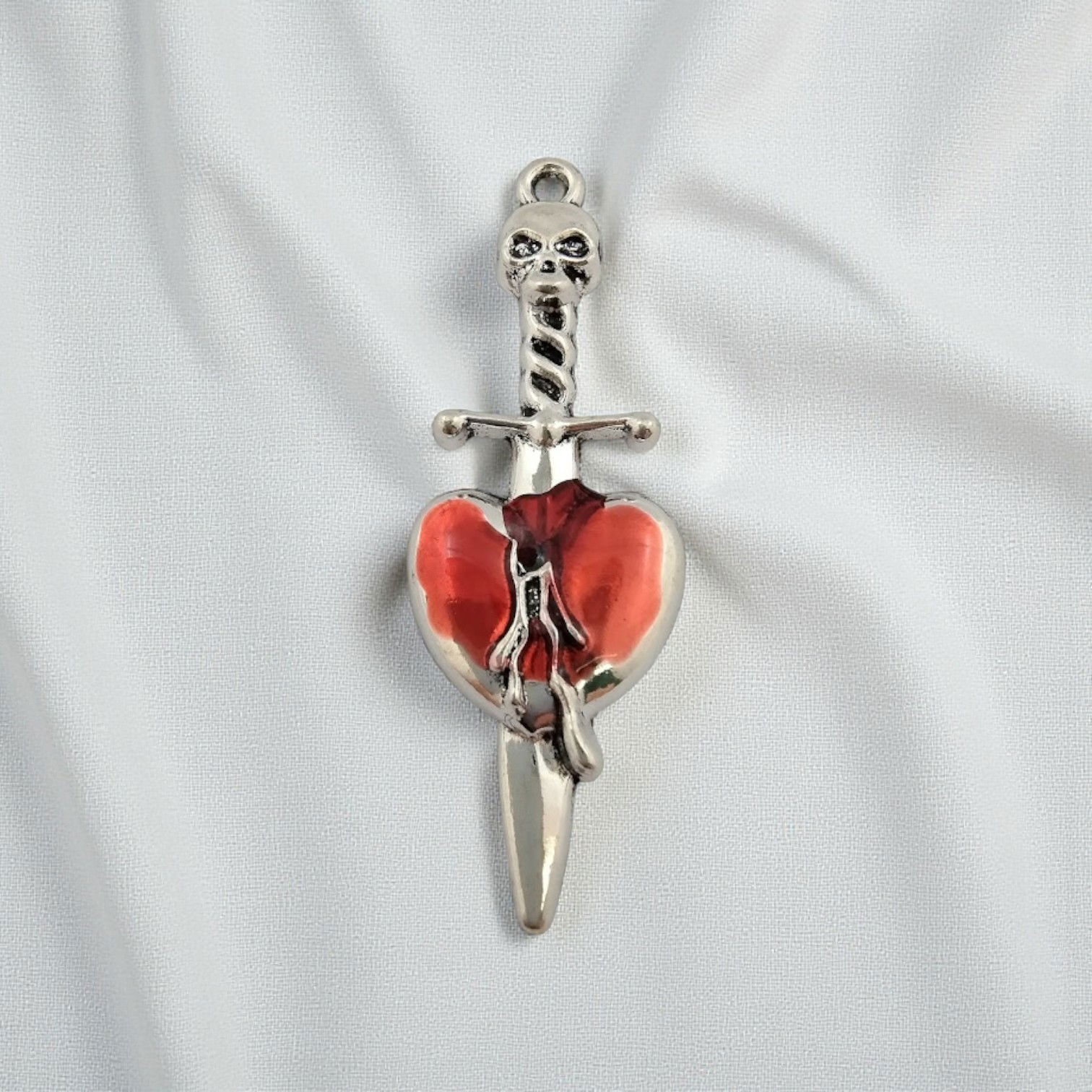 Dije Corazón Rojo Calavera Espada 18 mm x 50 mm Acero Quirúrgico - 400338