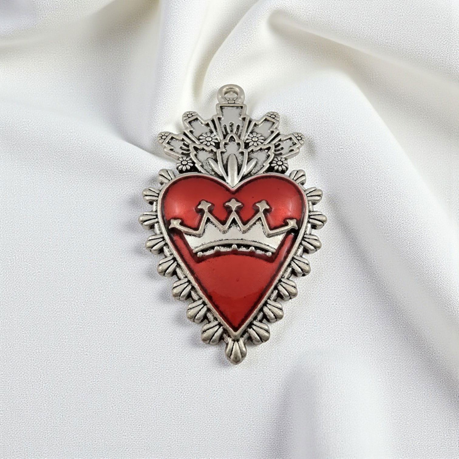 Dije Corazón Rojo Corona 25 mm x 45 mm Acero Quirúrgico - 400342